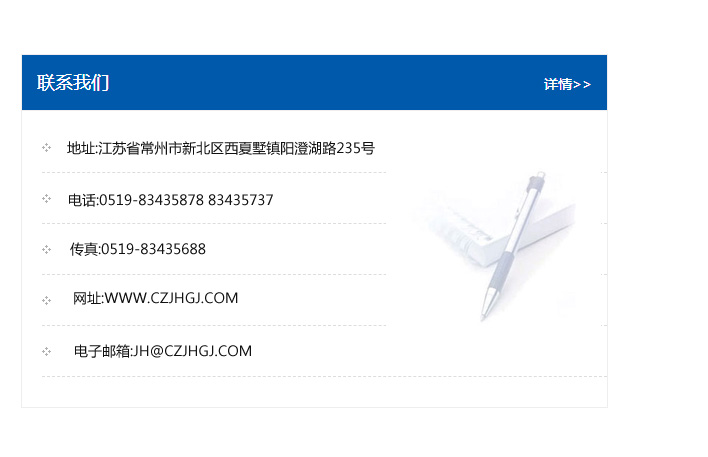 地址:常州市新北區友邦商務大廈1幢16、17層  電話:0519-85101652  傳真:0519-85112595  郵編:213022  網址:www_cz-jiayue_cn.bokaish.com  郵箱:xiajifengaa@163.com